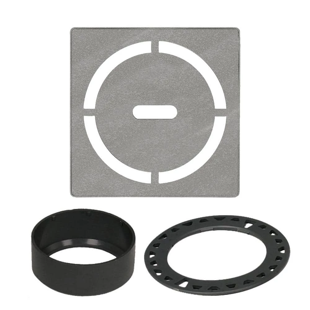 - Package includes: 4 in. square grate and frame, height adjustment collar and lateral adjustment ring