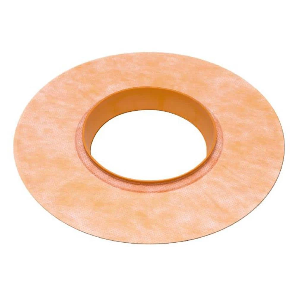 Kerdi-Seal-MV is a prefabricated waterproofing seal with over-molded rubber gasket. It is designed to protect moisture sensitive backing panels at the mixing valve in Kerdi Shower installations. The diameter of the mixing valve opening is 4-1/2 in.